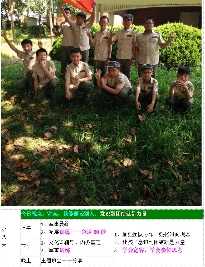 军事训练、情商训练、团队拓展、独立自主、生存技能