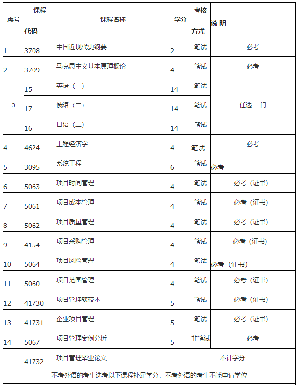 其他类专业毕业生报考本专业须加考“项目管理学”课程。
