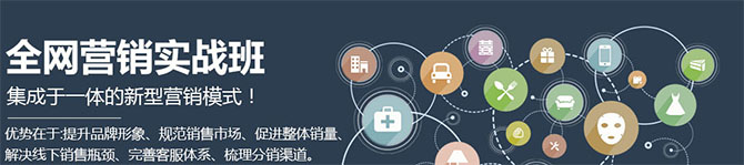 全网整合营销实战班全网营销是全网整合营销的简称,即从产品规划、产品开发、产品定位、网站建设、网站运营、品牌推广、产品营销 等于一体的营销模式。整合互联网渠道(包括移动互联网、PC互