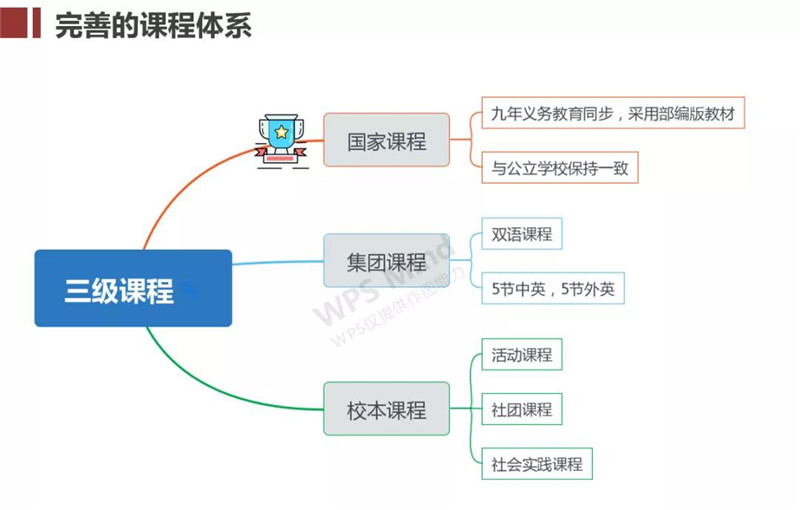 枫叶一直秉承“中西教育优化结合,实施素质教育”的办学理念,运用完善的课程体系,保证教学效果。九年义务教育阶段,枫叶学校开足开全国家教育部要求的所有课程,使用教育部要求统一的部编版教材,与公立学校保持一致。在国家课程基础上又开设了枫叶特色的集团课程——10节英语课。包括5节中教,5节外教,外教课程采用枫叶集团自编教材,开创独特的双语双学历教育模式。枫叶还有丰富的校本课程——多元文化课程,活动课程,社团课程,社会实践课程。