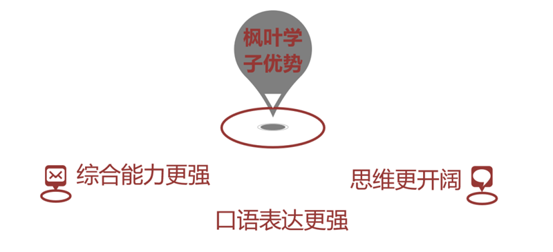 枫叶的理念一直在于不掐尖录取,一般有些学校他们是择优录取,比如说一个孩子,现在就是95分的水平,然后他们经过学校的培养以后,达到了98分,其实孩子进步了三分,但是真正展现一个教育学校教育实力的方面,是让普通变成优秀,让优秀变卓越。就是能让一个70分的孩子变成90分,这才是真正展示一个学校实力的一个方式。